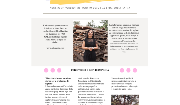 Numero 3-VENERDì, 26 AGOSTO 2022 | Azienda Suber Extra Nella terza puntata della rassegna “GAL BMG Stories” incontriamo Maria Moro dell’azienda Suber Extra.