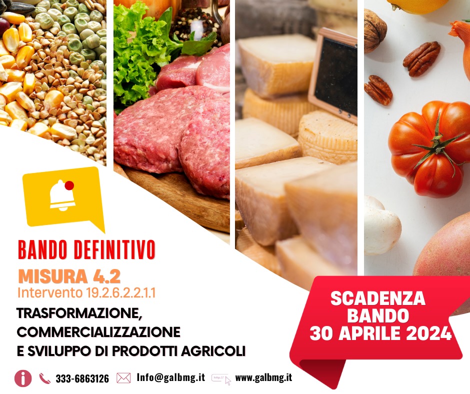 Il GAL BMG, con Delibera del CDA n. 1 del 29/02/2024, ha approvato il Bando relativo all’Intervento 19.2.4.2.2.1.3 (Trasformazione, commercializzazione e sviluppo di prodotti agricoli).