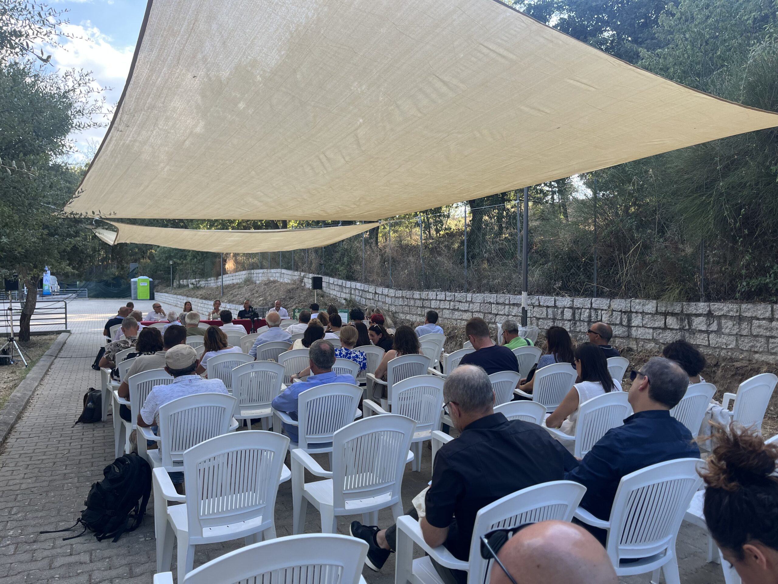 La mattina dell’8 settembre, a Lodine, all’interno di una cornice eccezionale, rappresentata dalle montagne del Gennargentu, le acque del lago di Gusana, i resti del Nuraghe Sas Trinta battaglias e la Chiesetta di San Giorgio, i partecipanti sono stati accolti dal GAL ospitante e si sono conosciuti meglio. Insieme al sindaco, Davide Cualbu, hanno visitato l’incantevole borgo barbaricino ed i suoi “Serrandales”, coloratissimi e caratteristici murales realizzati nelle saracinesche dei garage in occasione di ”Giornate per l’Arte”, una manifestazione dedicata alla Street Art che si svolge ogni anno nel mese di agosto. Successivamente hanno avuto modo di apprezzare i graniti ed i gerani del centro storico di Gavoi, insignito insieme ad altri sei comuni sardi del marchio di qualità turistico-ambientale “Bandiera arancione”, conferito dal Touring Club Italiano ai piccoli comuni dell’entroterra che si distinguono per un’offerta di eccellenza e un’accoglienza di qualità. Le delegazioni hanno, inoltre, incontrato i sindaci di Gavoi e Teti, Salvatore Lai e Costantino Tidu, e, dopo una pausa pranzo presso l’agriturismo Abini, luogo magico e sede dell’omonimo santuario e villaggio nuragico, hanno partecipato attivamente al seminario di inaugurazione del Festival Esperienze di suoni e acqua, giunto quest’anno alla sua seconda edizione.