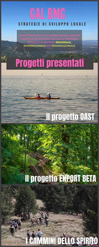 La sottomisura 19.3 (Cooperazione Leader) offre ai GAL la possibilità di rafforzare la strategie di sviluppo locale attraverso progetti di respiro regionale, interregionale e/o transnazionale. I progetti presentati dal GAL BMG nell’ambito di tale misura sono tre: OAST, ENPORTBETA E I CAMMINI DELLO SPIRITO.